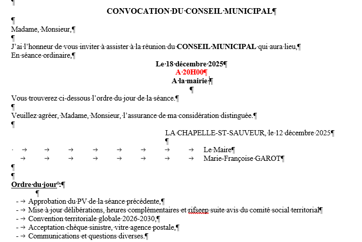 Le prochain Conseil Municipal de La Chapelle Saint Sauveur
